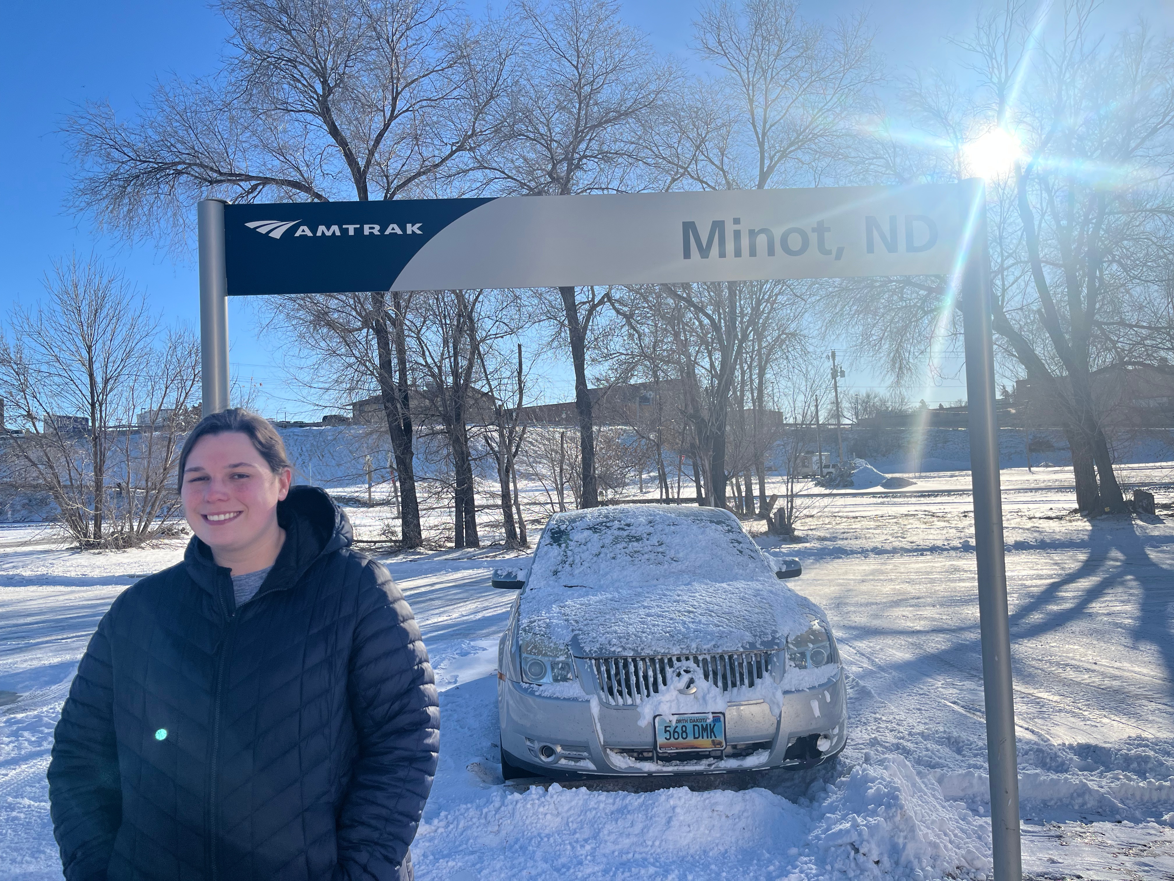 A blizzard was another novel thing for me and my brother. As we got into Devil’s Lake, I noticed passengers jumping out of their cars as we pulled up. I can only assume they were waiting until the last possible minute to brave the cold and snow. I did see a station they could have waited in, but maybe it was closed for the day since we got in so late.