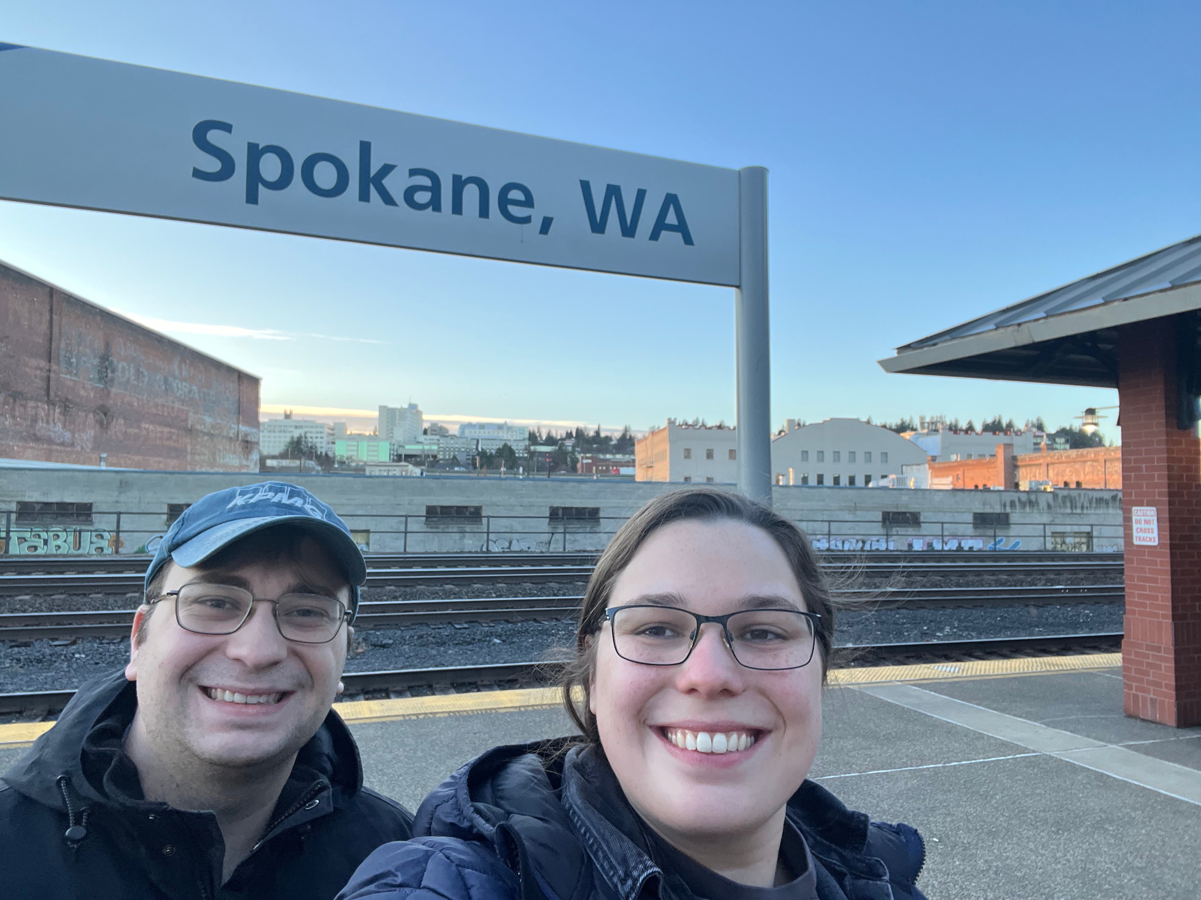 We were told breakfast would be served early because the dining car was also planning to serve lunch. This is a rare occurrence on the Empire Builder, which is normally scheduled to arrive at King Street Station around 11:30 a.m. We sat down with a guy who works on this part of the train and was getting off in Spokane. The dining car attendant had been told we only had about 20 minutes until Spokane and he would only have time for eggs, but our tablemate was convinced it would be closer to 45 minutes. He was right, which meant we had plenty of time to eat and absorb his impressive collection of train and yard fun facts.